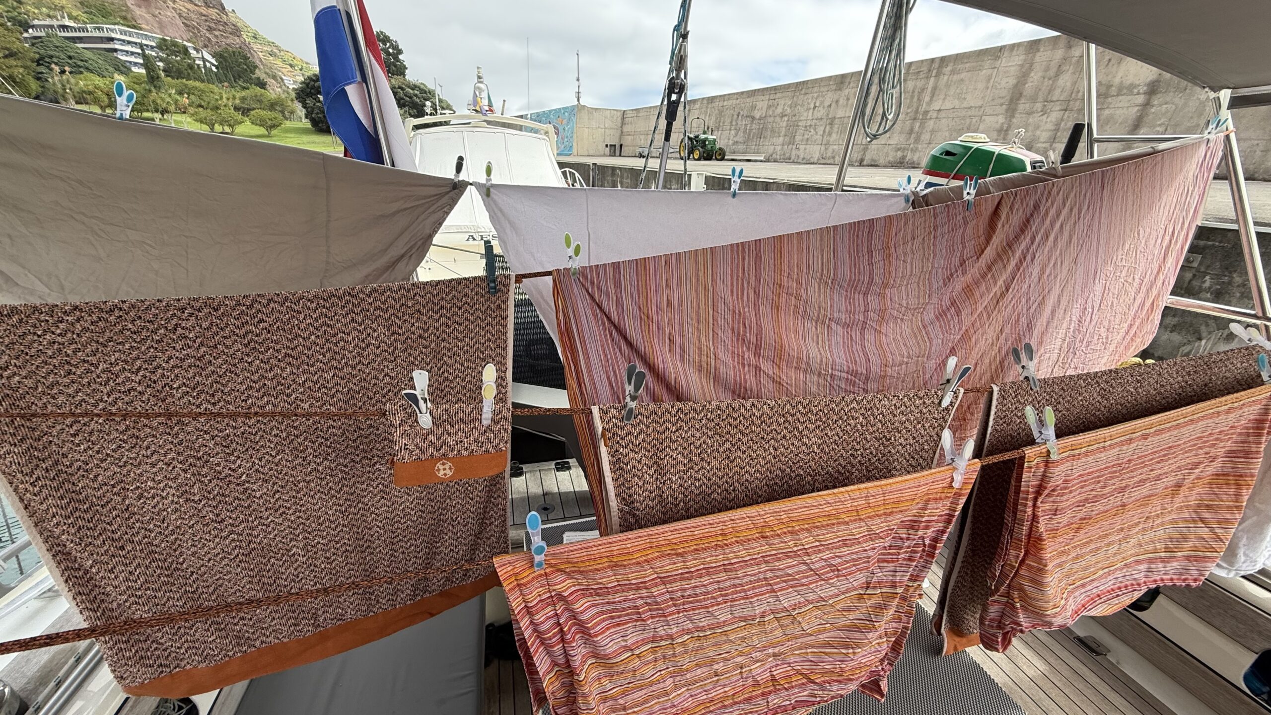 In Calheta troffen we nog net een avondje weer andere zeilvrienden van Saskia en Koen, die ze uit Zeeland kennen. Tineke en Eric van de Maneskin waren direct van Porto naar Porto Santo gevaren, dit omdat ze bang waren voor de Orcas die de Spaanse en Portugese kusten onveilig maken. Ze had het er in Madeira nog steeds over alsof het nog steeds een dreiging was. De volgende dag gelijk vrienden gemaakt door de wasmachine aan boord aan te bieden voor gebruik, want lokaal was er wel een wasserette maar alleen bemand en dus heel duur. Later ook nog aan een Duitse buurboot aangeboden, een snelle manier om vrienden te maken dus.