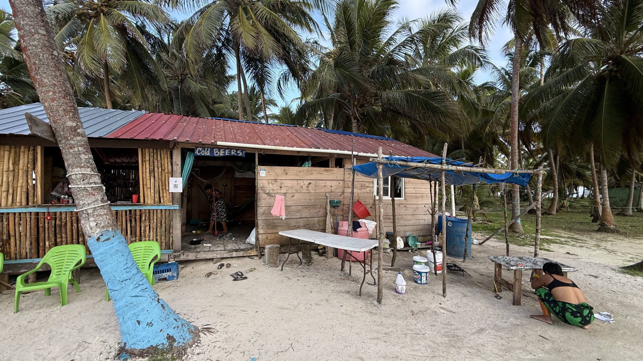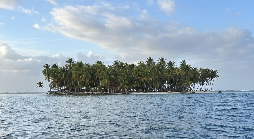 Helaas is de San Blas niet meer het idyllische “niet geciviliseerde” eilandenrijk wat het vroeger was. Het aantal zeilboten was enorm en er voeren zelfs kleine cruise-schepen. Ik heb via de AIS geschat dat er zeker 400-500 zeilboten voor anker lagen, waarvan zo’n 20-30 bij het eiland waar wij lagen. Het gebied is zeer slecht gekarteerd bij de grote kaartleveranciers. Er is wel een gids met detail kaartjes maar die schijnen ook niet altijd te kloppen, en wij waren er maar kort dus niet aangeschaft. Daarom wilde ik naar een eiland wat veilig aan te lopen was. Optisch is het precies wat je je voorstelt bij een tropisch eiland: zand, palmbomen. Alleen meer hutjes en verhip, zelfs een resortje met harde muziek. Een karaoke bar maakte het “compleet”. ’s avonds zijn we even aan land gegaan en konden we voor $3 prima koude Panamese biertjes kopen bij de indiaan die nog open was. We moesten daarna wel opschieten, want hij wilde naar huis op de vaste wal….