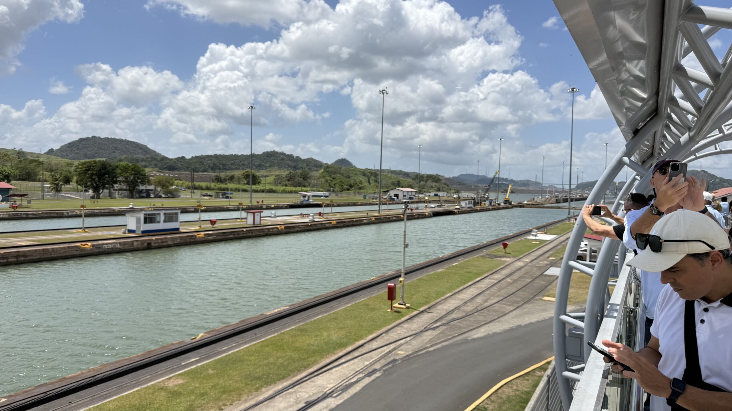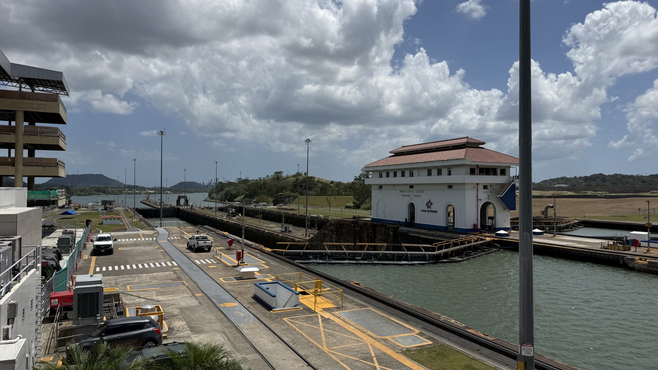 De dag daarna lekker bijgekomen en gevierd met de mannen dat we op de eindbestemming (voor hun dan) zijn. Een auto gehuurd waarmee we ook woensdag naar het vliegveld kunnen. Zondag naar het kanaal gereden, er is bij één van de sluizen een bezoekerscentrum. Dat is flink aangepakt sinds zes jaar geleden, er staat nu een IMAX theater waarin een film gedraaid wordt over de verschillende bouwfasen van het kanaal en hoe het werkt. Indrukwekkend! Vervolgens mag je dan boven bij de sluizen kijken, maar op de tijd dat je daar bent zijn de schepen van de ene kant er al doorheen. We hadden geen zin in nog anderhalf uur wachten dus maar weer verder gereden. Gelukkig kwamen we bij de ingang van het complex de eerste schepen tegen en konden we de beroemde “muilezel” locomotiefjes in werking zien.